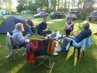 I decided that one of my challenges was to spend a night under canvas for the first time in nearly forty years. My now middle-aged back wouldn't cope with the lack of a mattress, so the blow-up variety was brought along. Not having the old sleeping bag any longer, I reckoned that a duvet would be enough (it wasn't!). And life was made much easier by the fact that the lovely Karl not only brought along his own spare two-man tent, but swiftly constructed the whole thing for us.